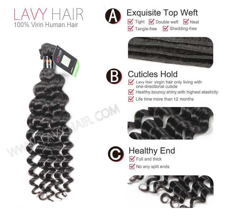 Regular Grade 1 Bundle Burmese Deep Wave Virgin Human Hair Extensions